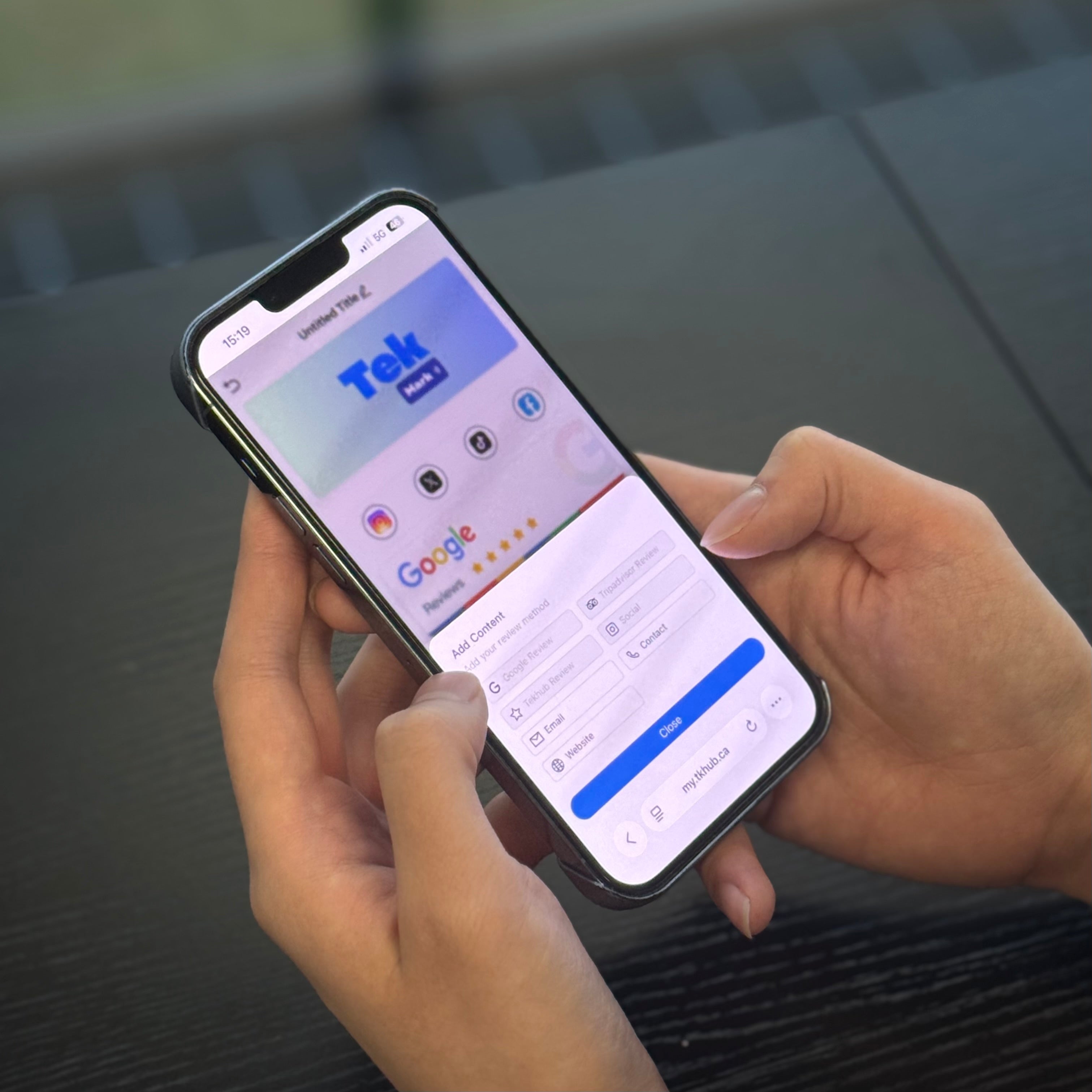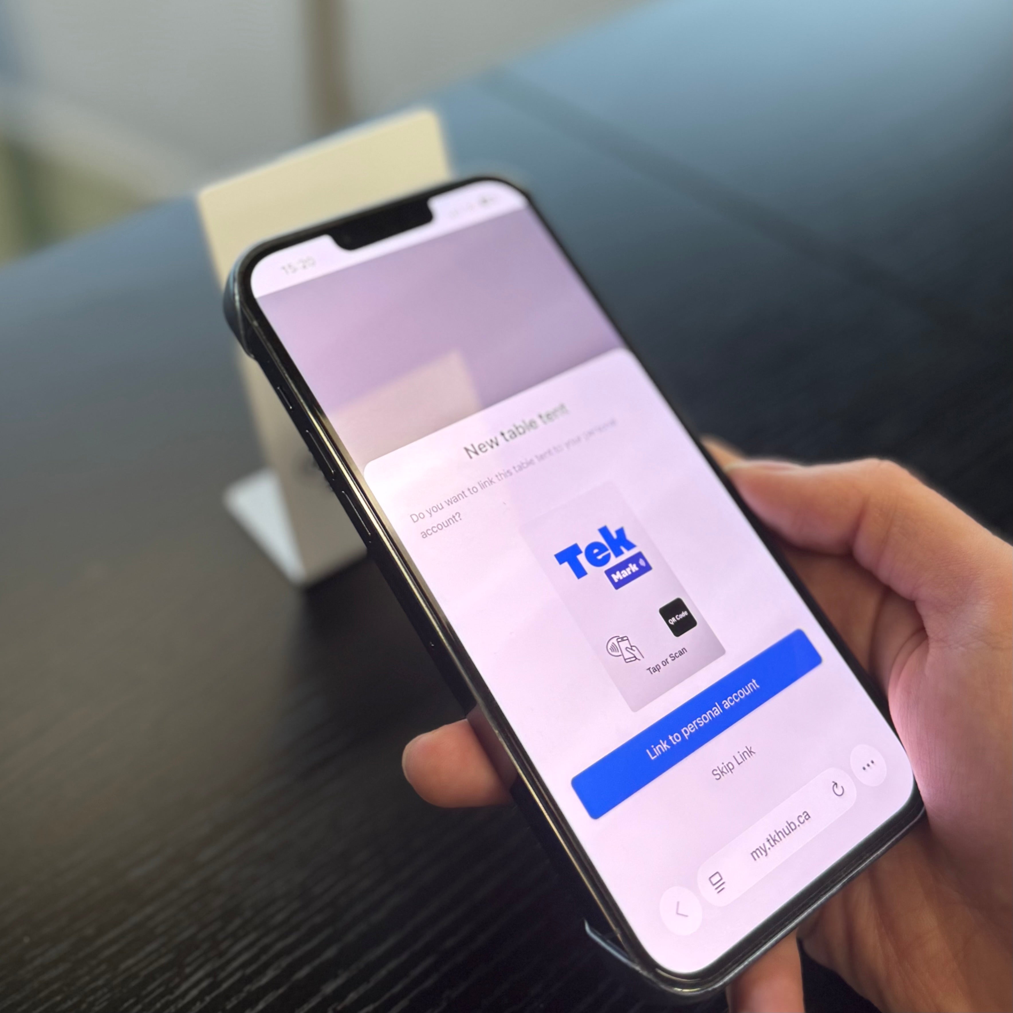 You don’t need any app to use TekMark. A quick tap brings your profile up in the visitor’s mobile browser, where they can call, email, save your contact, or share their details. Works on modern iPhone and Android. If a phone can’t open automatically, you can share a short web link instead—still no app required.